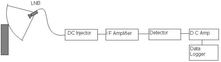 Now we have a much larger DC voltage varying slowly with the strength of the signal. You can display it with a volt meter, and could plot a graph against time. However, one of the great things about radio astronomy is that you can do it whilst you are asleep or whilst you are not even there, so a data logger is an essential.