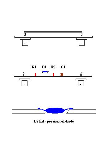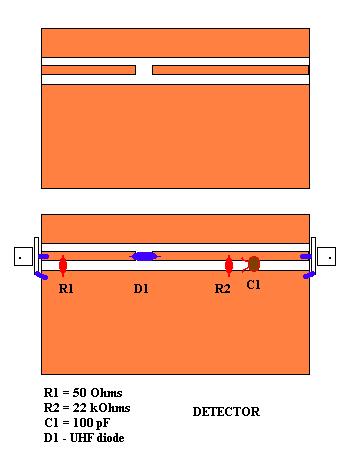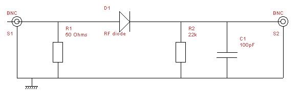 Please note that all components should be of a small size, particularly the capacitor. The latter should be around 2 or 3 mm in size to avoid associated inductance. The diode may be any suitable RF type that is capable of operating at 1 to 2 GHz. All leads must be kept short and curves avoided as these will act as inductances at this frequency. All soldering must be neat and tidy. The diode should be fitted last as this is the most heat sensitive component.