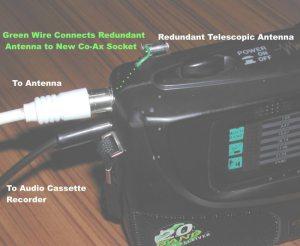 ![]() Picture showing TV coaxial connector replacing radio's antenna. |