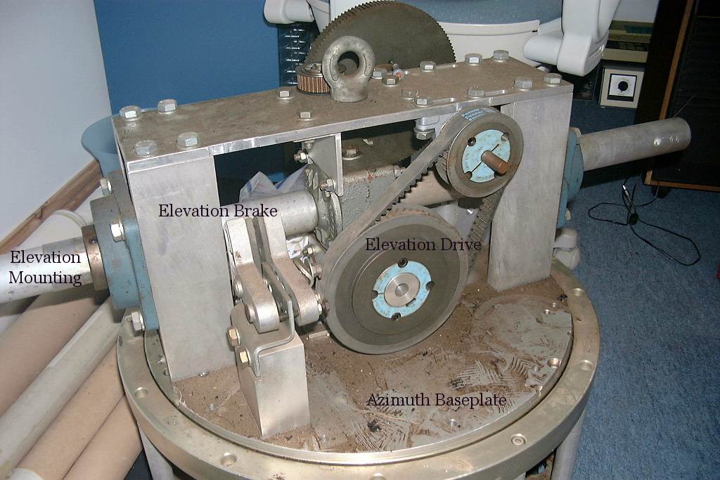 This shows the parts of the azimuth/elevation drive assembly. Driven by two