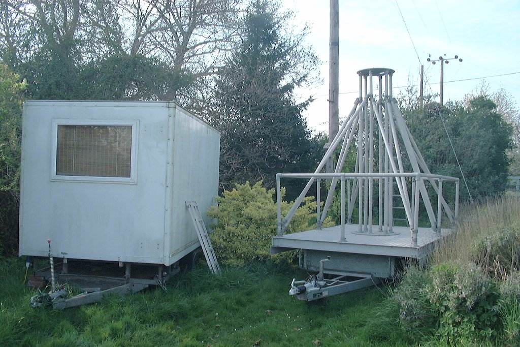 Laurence Newell has sent in some photos and a description of his 4 GHz observatory. This under construction. We are looking forward to the first data!. Laurence is also working on a radio astronomy website. Click on the thumbnails below to view the full quality images.